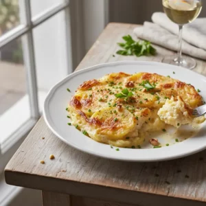 Gratin de pommes de terre à la crème d'ail et noix de muscade