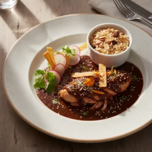 - Enfin, ajoutez le poulet cuit à la sauce mole, mélangez délicatement et laissez encore mijoter 10 minutes pour que les saveurs se mélangent bien.