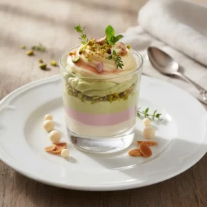 Parfait Chocolat Blanc et Pistaches au Parfum de Rose