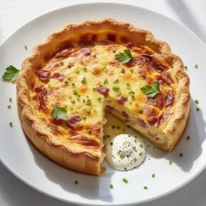 Découvrez cette délicieuse recette de quiche lorraine authentique, une spécialité alsacienne familiale qui ravira toute la famille. Un plat savoureux prêt en seulement 60 minutes, parfait pour 4 personnes.
