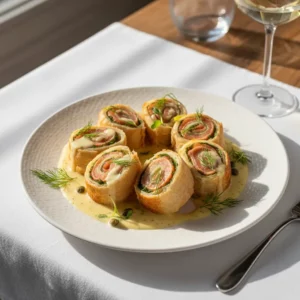 Découvrez cette délicieuse recette de roulés feuilletés au saumon fumé et aneth frais qui ravira toute la famille. Un plat savoureux prêt en seulement 40 minutes, parfait pour 4 personnes.