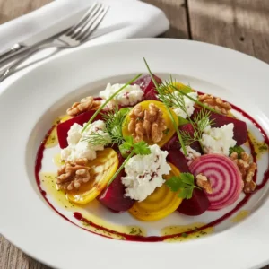 Découvrez cette délicieuse recette de salade composée de chèvre frais, noix et betteraves qui ravira toute la famille. Un plat savoureux prêt en seulement 50 minutes, parfait pour 4 personnes.