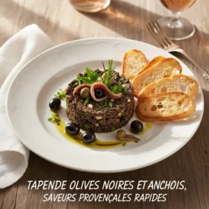 Découvrez cette délicieuse recette de tapenade olives noires et anchois, saveurs provençales rapides qui ravira toute la famille. Un plat savoureux prêt en seulement 40 minutes, parfait pour 4 personnes.
