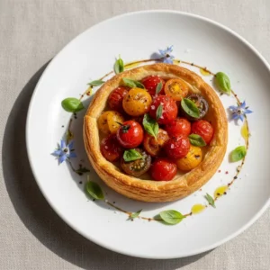 Découvrez cette délicieuse recette de tartelette gourmande aux tomates cerises et basilic qui ravira toute la famille. Un plat savoureux prêt en seulement 50 minutes, parfait pour 4 personnes.