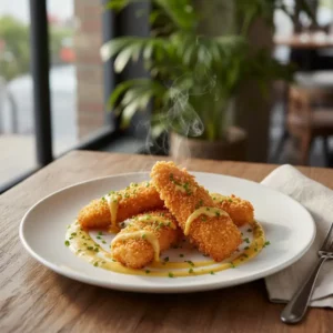 • Disposez les tenders côte à côte dans le panier de l’air fryer (en une seule couche pour qu’ils dorent uniformément – c’est le secret d’un croustillant au top !).