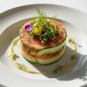 Terrine de saumon fumé et légumes croquants, aneth
