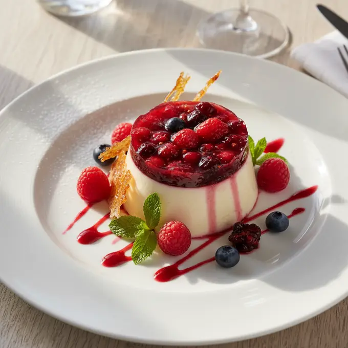 Panna Cotta Framboise et Gelée de Fruits Rouges