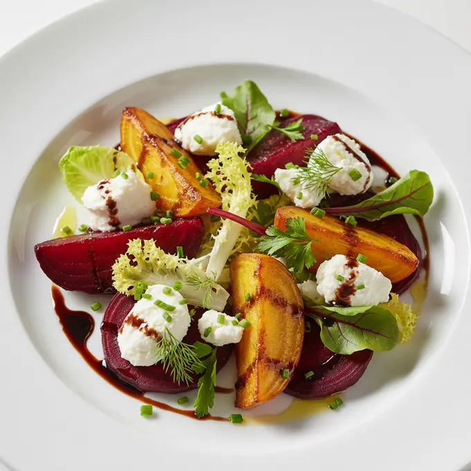 Salade composée de chèvre frais et betteraves rôties
