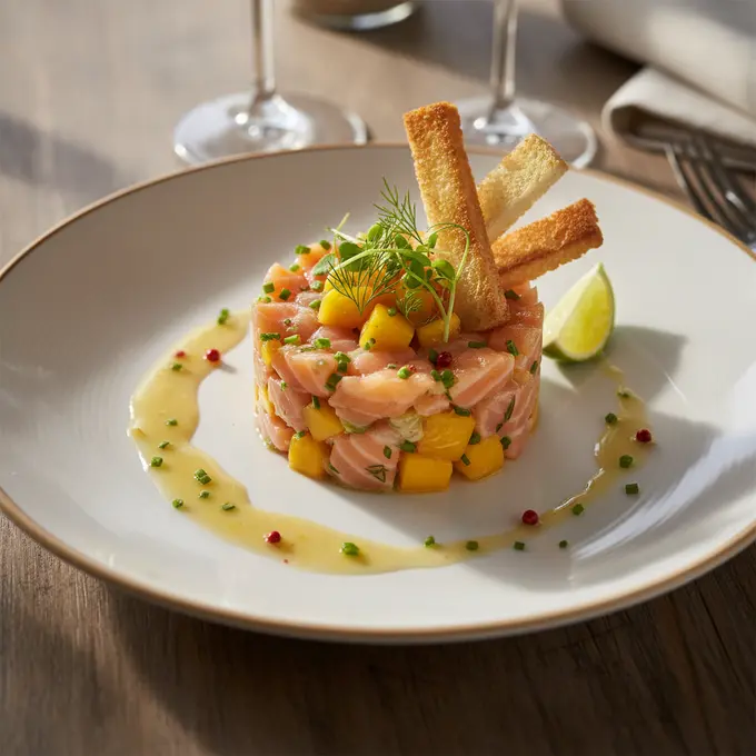 Tartare de saumon frais et mangue acidulée