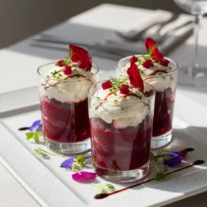 Découvrez cette délicieuse recette de verrines festives de betterave et chèvre frais qui ravira toute la famille. Un plat savoureux prêt en seulement 50 minutes, parfait pour 4 personnes.